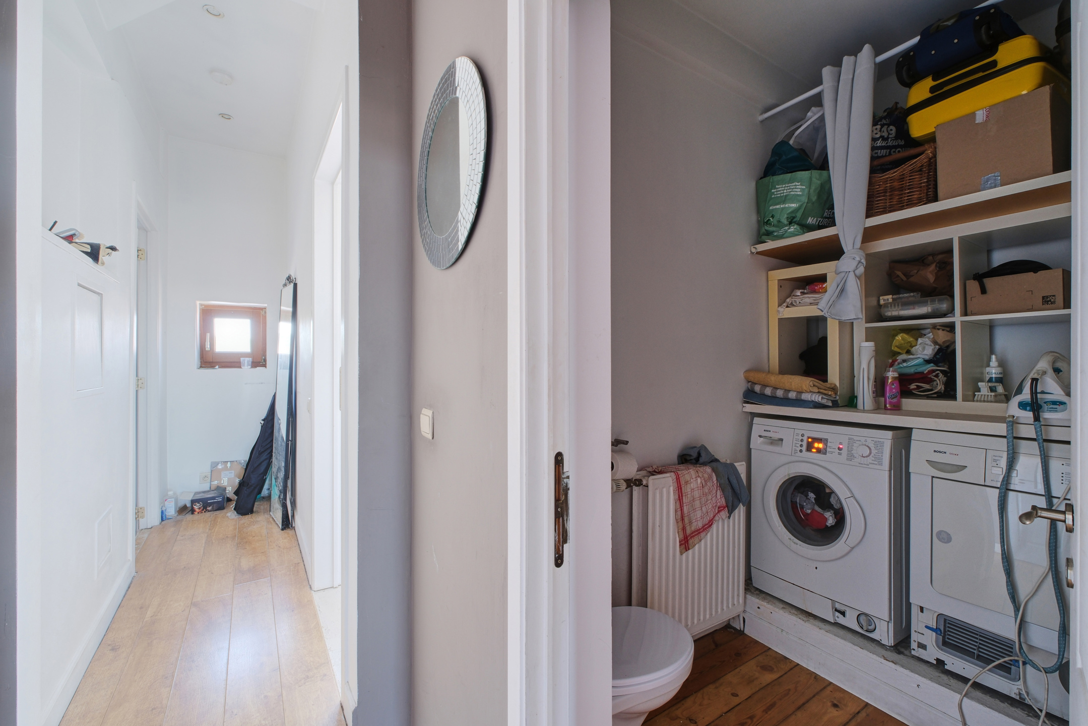 Un hall de nuit desservant une buanderie, une toilette séparée et deux autres chambres situées à l'arrière.