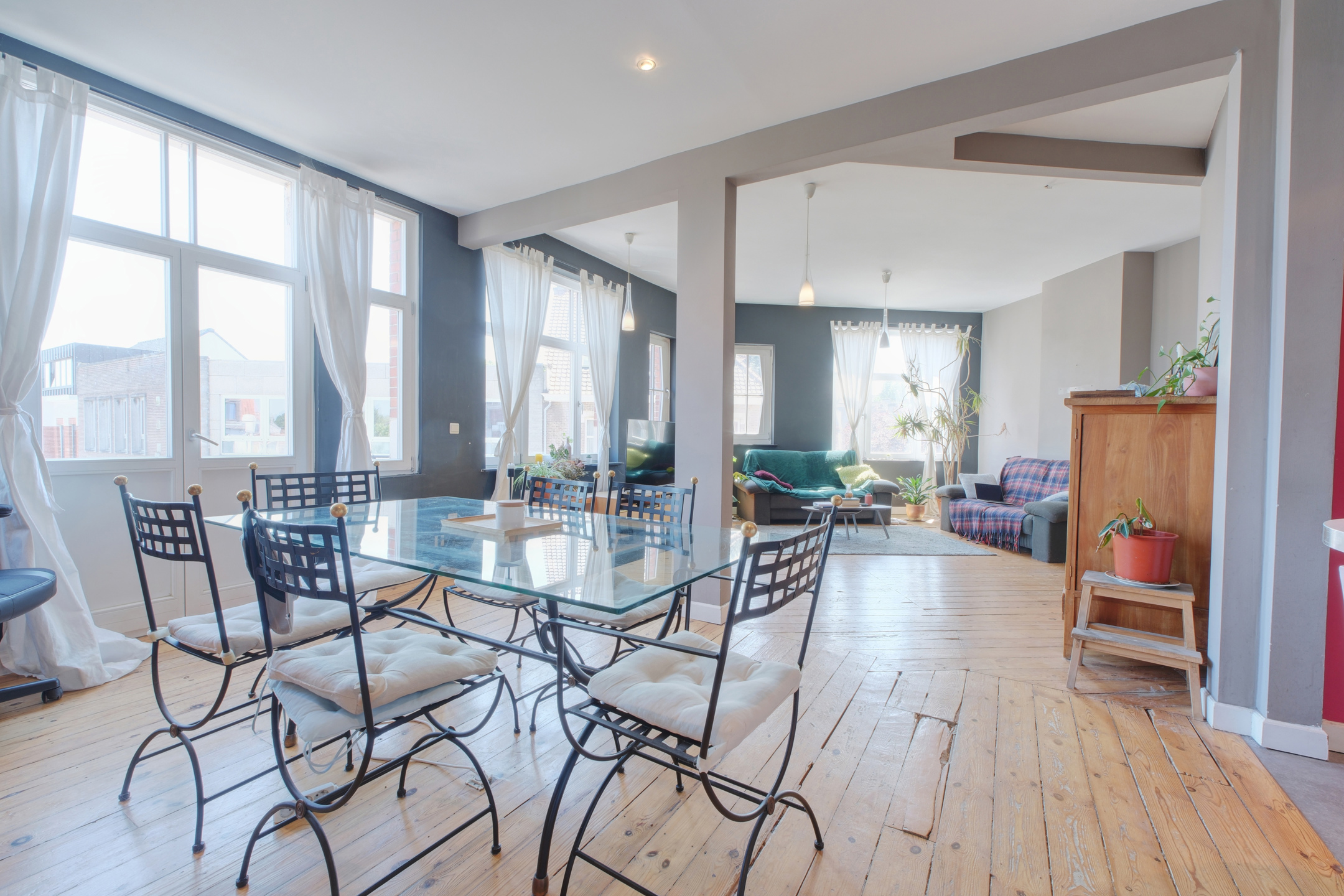Actuellement loué en colocation 3 chambres, l’appartement est officiellement repris comme 2 chambres + bureau selon le titre de propriété.