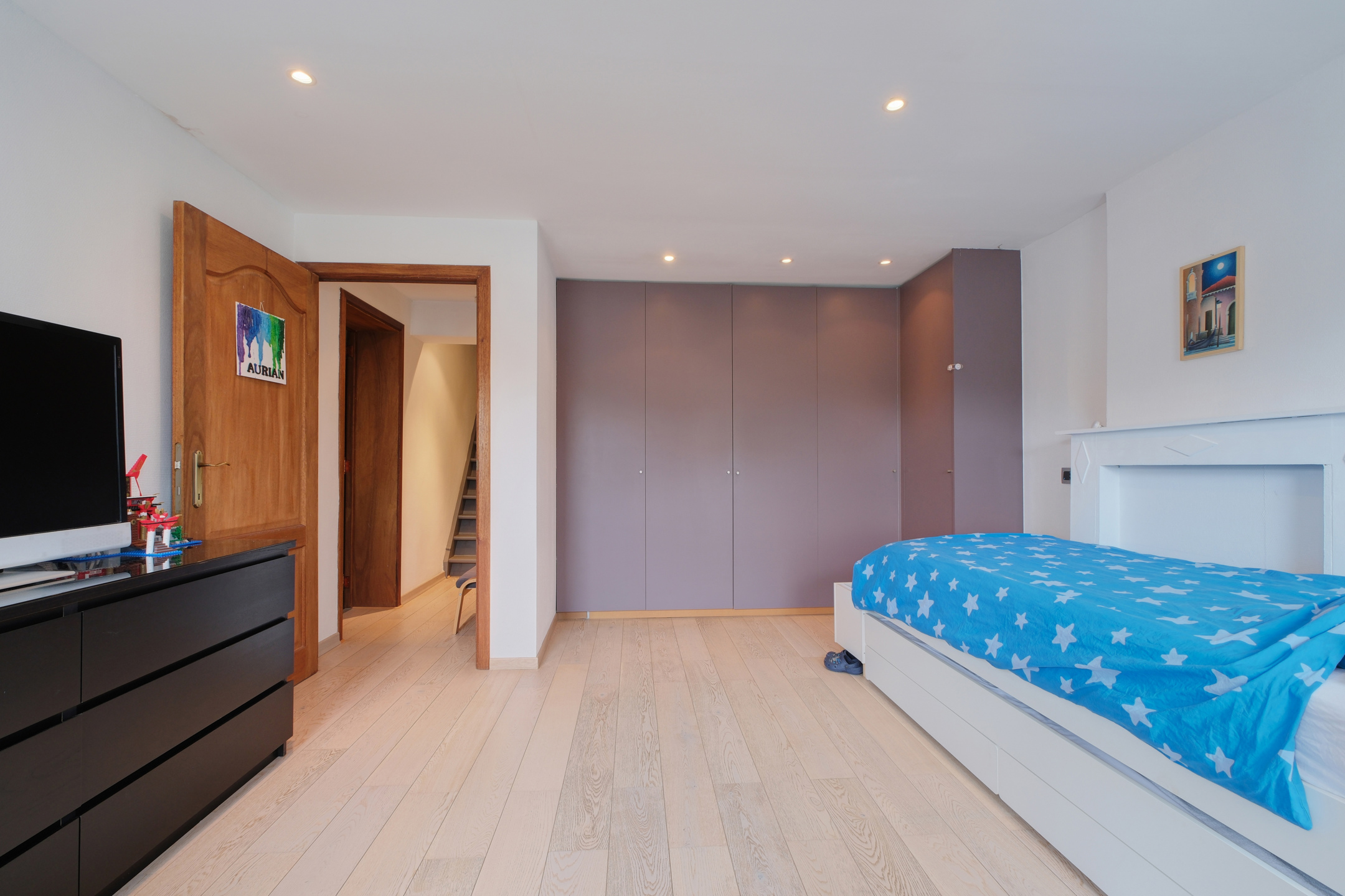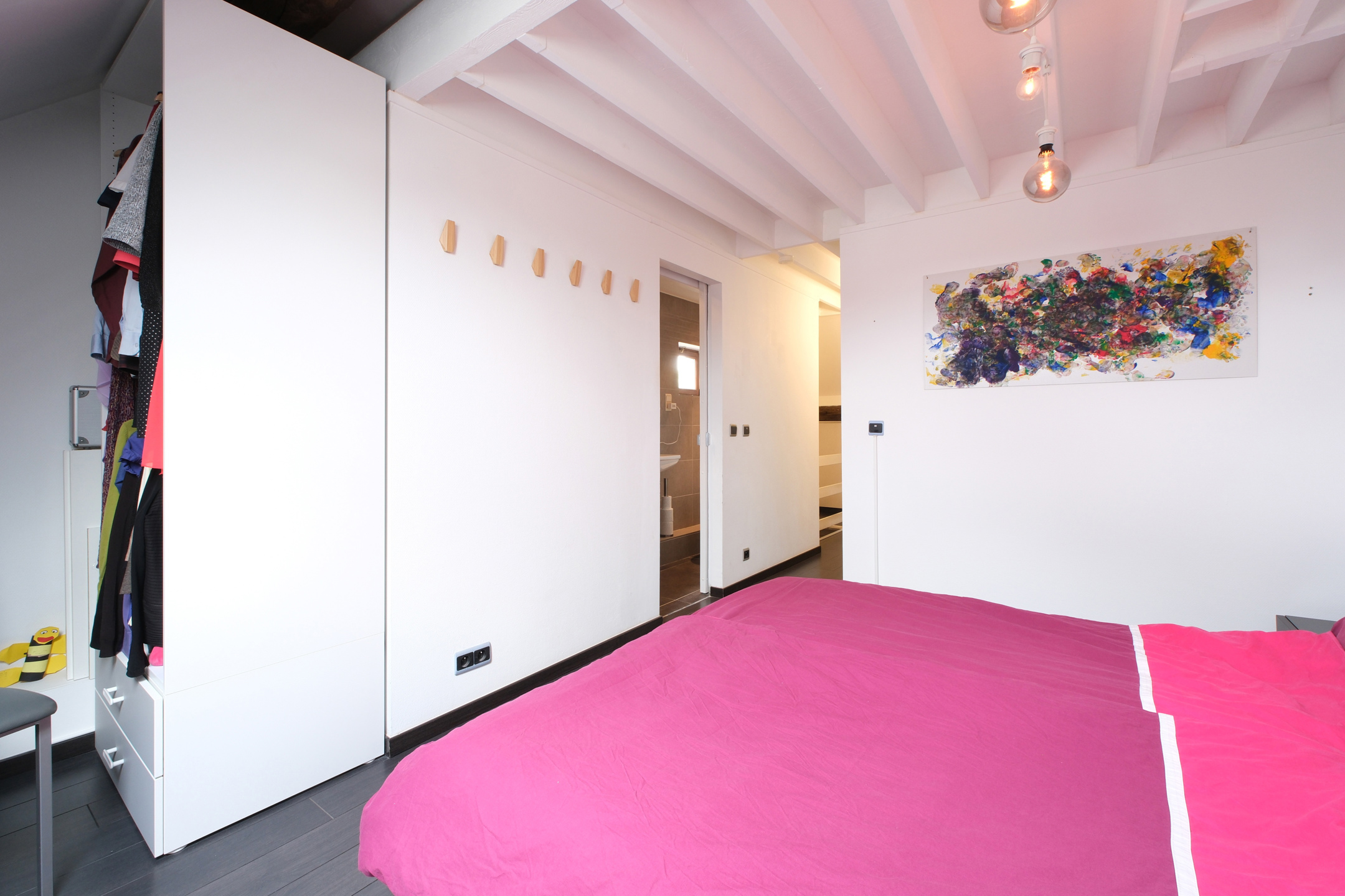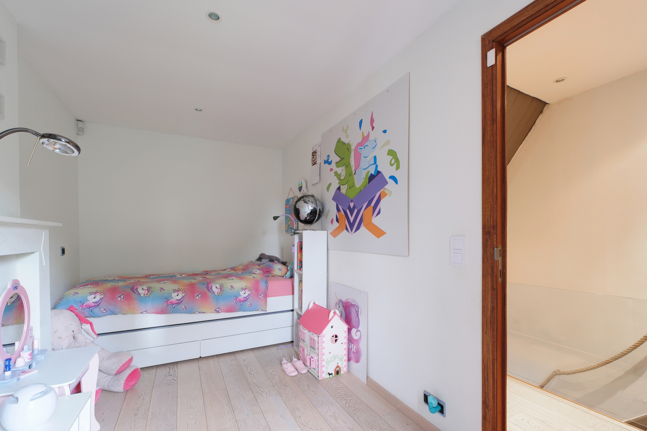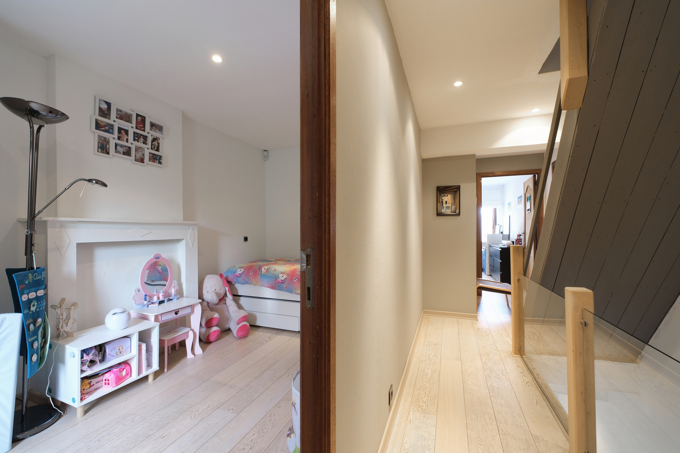 Au deuxième étage, le hall de nuit doté d'armoire de rangement distribue deux autres chambres, dont une avec mezzanine et la seconde bénéficiant d'une salle de douche privative.