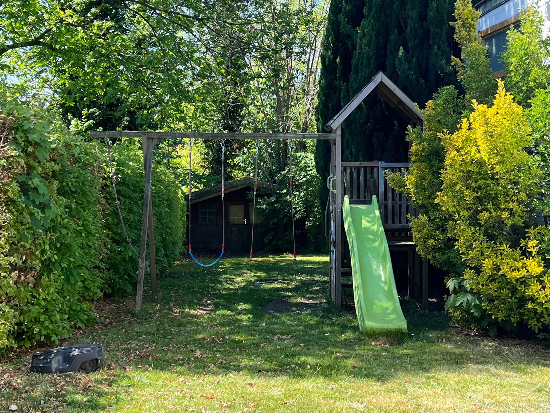 Orienté Sud-Ouest, l’extérieur a été pensé pour le bonheur de toute la famille : une aire de jeux ravira les enfants, tandis qu’une cabane de jardin équipée en électricité vous permettra de recharger vos vélos. Un accès privatif à l’arrière de la maison facilite les déplacements à vélo ou à pied.